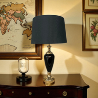 This luxury table lamp features a sleek black ceramic base in an urn-shaped design, highlighted with gold-finished details on the top and bottom for a rich and premium look. The lamp is paired with a black hard shade (non-fabric) that adds durability while maintaining a classy and modern appearance.
