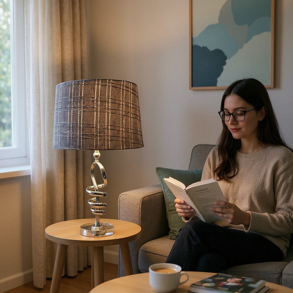 Modern Chrome Twist Table Lamp with Crystal Base