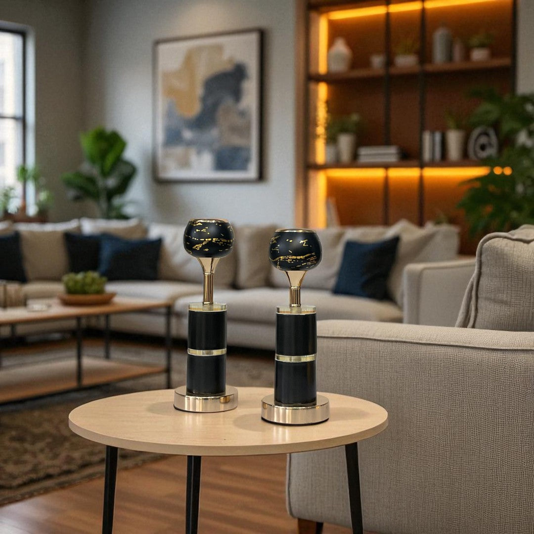 The Vintage Radiance Crystal Candle Holder is a refined decorative piece that exudes old-world charm and luminous elegance. Featuring a sculpted metallic frame with a rich antique finish and embedded with sparkling crystal elements, this candle holder is designed to elevate any space. Perfect for formal occasions, romantic dinners, or classic home décor, it beautifully captures and reflects candlelight, casting soft, shimmering patterns throughout the room. A true blend of tradition and sophistication, this piece offers lasting style and warmth.