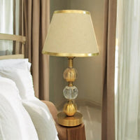 The Golden Crystal Charm Table Lamp is a perfect balance of elegance and sophistication. Featuring a gold-toned base accented with a beautifully faceted crystal orb, this lamp adds a luxurious touch to any space. The cream fabric shade with gold trim diffuses a warm and inviting glow, making it an ideal addition to bedrooms, living rooms, or offices. Elevate your décor with this timeless and graceful lighting piece.