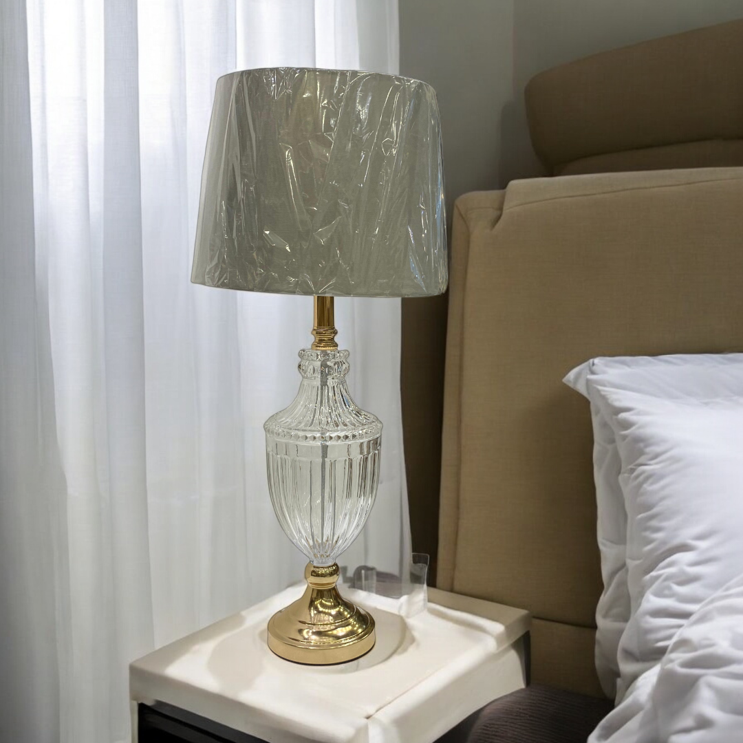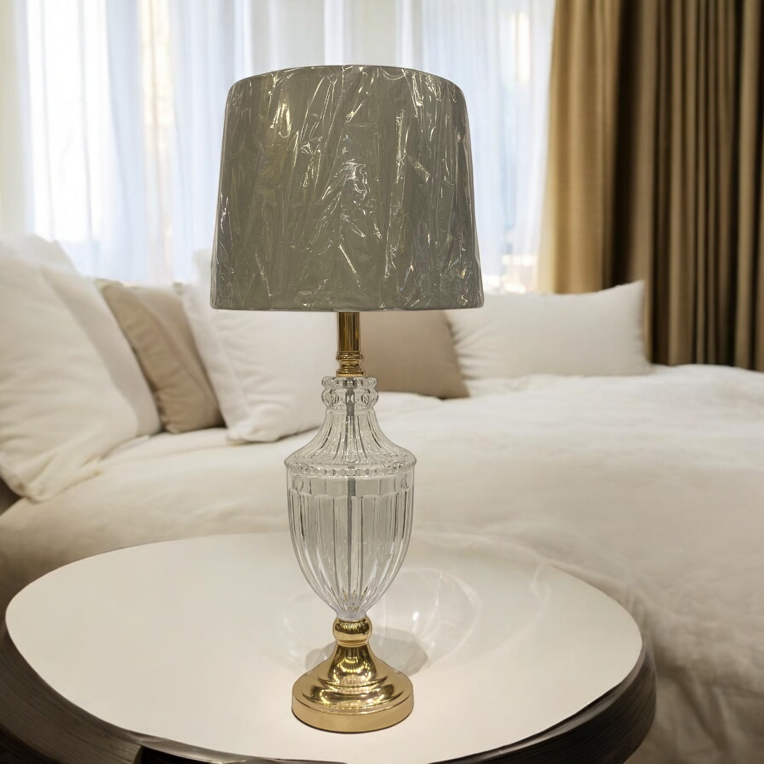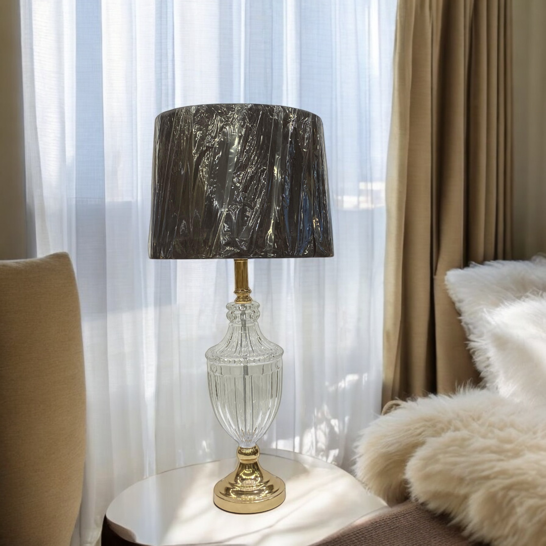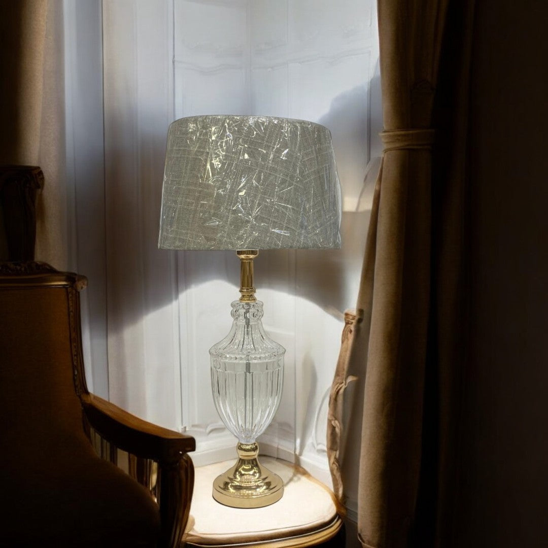 The Modern Brass Side Table Lamp with Heavy Glass is a timeless piece that embodies elegance and durability. Crafted from solid brass with a rich antique finish, it is complemented by a beautifully formed heavy glass body that adds depth and sophistication to its design. The combination of sturdy brass and luminous glass creates a striking balance of strength and refinement.