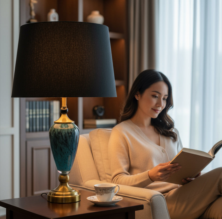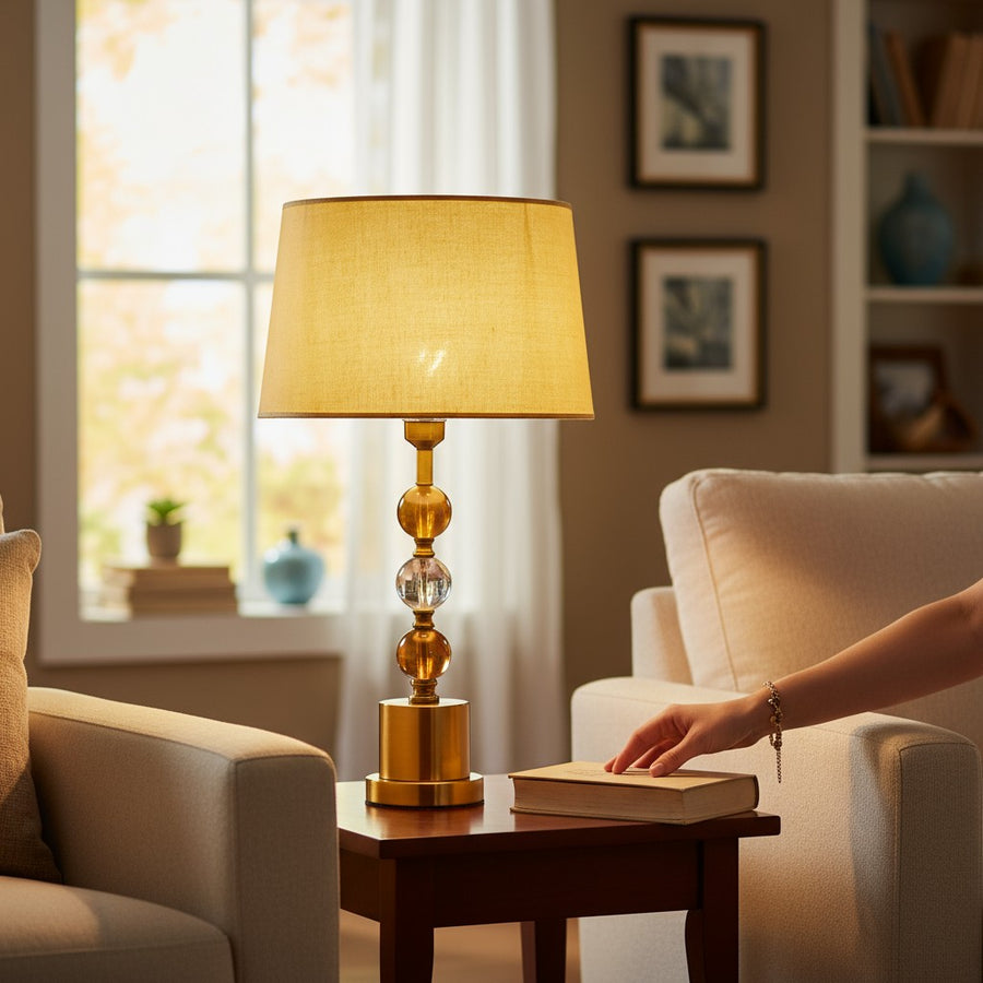 Lunaris Noir Metallic Crystal-Tier Table Lamp