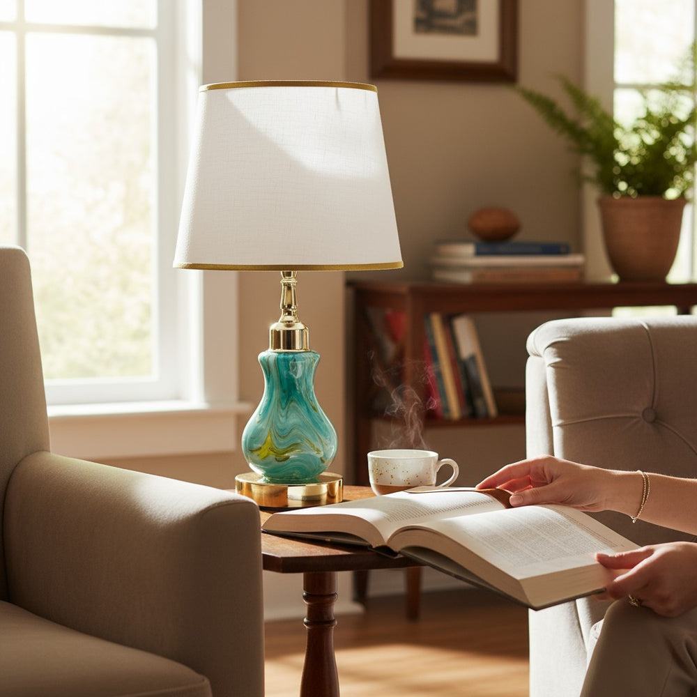 Turquoise Swirl Rose Gold Glass Side Table Lamp